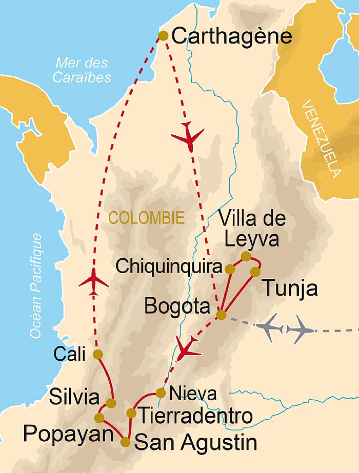 Étendue au pied de l'isthme de Panama sur les rives du Pacifique et de la mer des Caraïbes, striée de trois cordillères andines, la Colombie s'étend vers l'est en d'immenses plaines qui se perdent dans l'Amazonie. Cette géographie contrastée détermine l'originalité de ce pays, limitrophe du Pérou, de la Bolivie, du Venezuela et du Brésil, où se développèrent des civilisations précolombiennes originales, isolats confinés dans leurs vallées respectives, qui échappèrent à l'influence des grands empires voisins. Sa conquête, motivée par le mythe de l'Eldorado, se heurta à une forte résistance indigène mais fut aussi l'occasion d'affrontements entre conquistadors espagnols, comme Gonzalo Jiménez de Quesada qui servit de modèle au Don Quichotte de Cervantès, et allemands comme Ambrosius Ehinger ou Nikolaus Federmann, mandatés par les banquiers bavarois Welser. Ce voyage dans la Colombie d'aujourd'hui, en passe de devenir l'un des pays émergents d'Amérique latine, a été conçu pour vous faire découvrir, dans les meilleures conditions de confort, un des plus beaux pays du continent où l'originalité du patrimoine précolombien le dispute à la richesse baroque de la nouvelle Grenade : deux aspects toujours dominants dans la réalité métisse du pays actuel où coexistent héritage indigène et puissance de la tradition catholique. lire moins