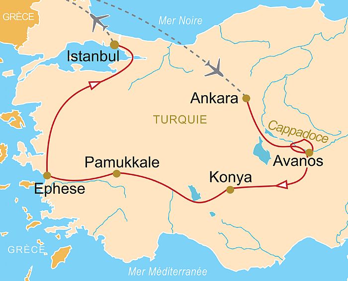 Au cours de ce voyage, nous vous proposons un condensé de la Turquie, de sa riche histoire et de son immense patrimoine, à travers la visite d'une série de hauts lieux qui transportent avec eux un riche imaginaire : Éphèse et la côte ionienne, qui furent bien souvent à l’avant-garde de la pensée grecque antique, l’aventure des Celtes galates à Ankara, la pensée byzantine née dans les étranges paysages de Cappadoce, Konya, berceau du soufisme. Sans oublier Istanbul, la cosmopolite, cité de Constantin le Grand et de Soliman le Magnifique. Votre conférencier vous fera découvrir et comprendre les nombreuses cultures ayant façonné l'histoire de la Turquie actuelle pour lui donner son identité propre, bien plus complexe qu'il n'y paraît au premier abord... lire moins