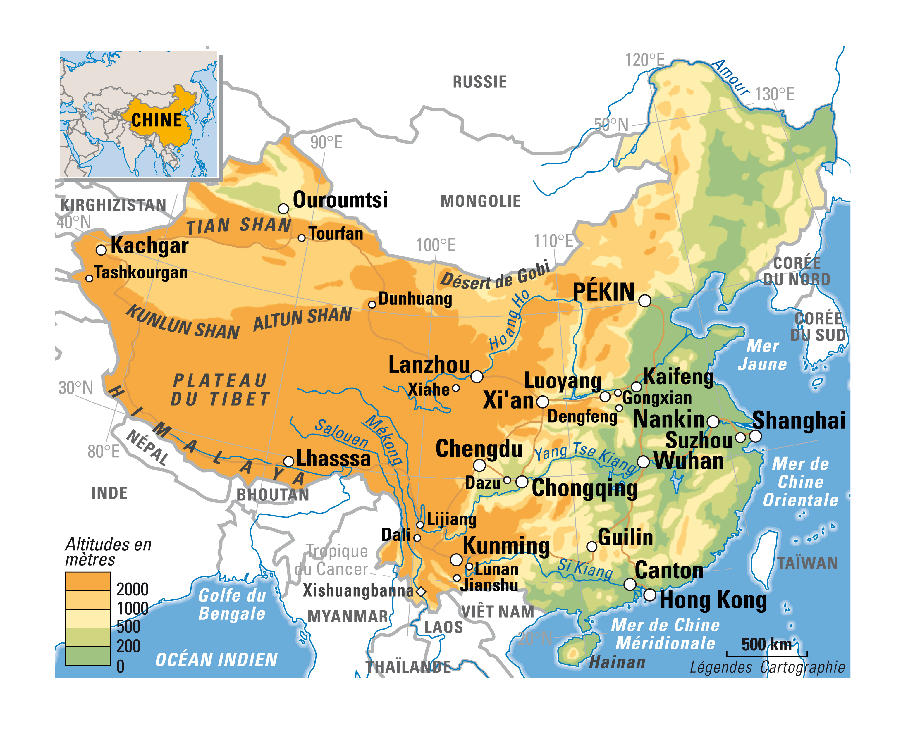 La porte de Dzoungarie Dans les limites de son territoire actuel, le relief de la Chine peut schématiquement se diviser en trois zones majeures. Le Sud-Ouest est occupé par les hauts plateaux tibétai...