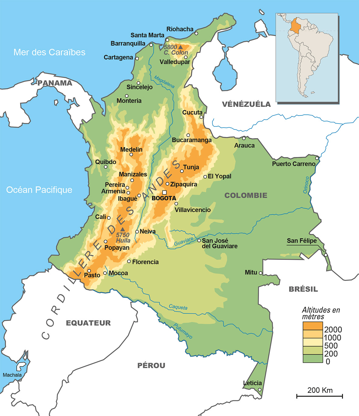 Étendue au pied de l'isthme de Panama sur les rives du Pacifique et de la mer des Caraïbes, striée de trois cordillères andines, la Colombie s'étend vers l'est en d'immenses plaines qui se perdent dans l'Amazonie. Cette géographie contrastée détermin...