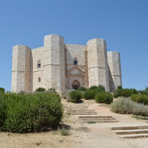 Situé près le de ville de Bari, dans les Pouilles, à mi-chemin entre les Murge et l'Adriatique, le Castel del Monte, puissant château solitaire à l'allure compacte et sévère, se d...